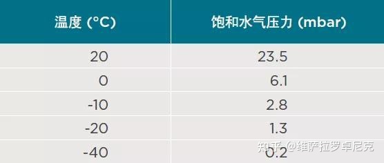 水氣的最大分壓隨溫度變化而變化。例如,溫度為20°C時,水氣的最大分壓為23.5 mbar。23.5 mbar被稱為20°C時的“飽和水氣壓力”。在20°C的“飽和”環(huán)境下,添加更多水氣會發(fā)生冷凝。這種冷凝現(xiàn)象可用來測量水氣含量。